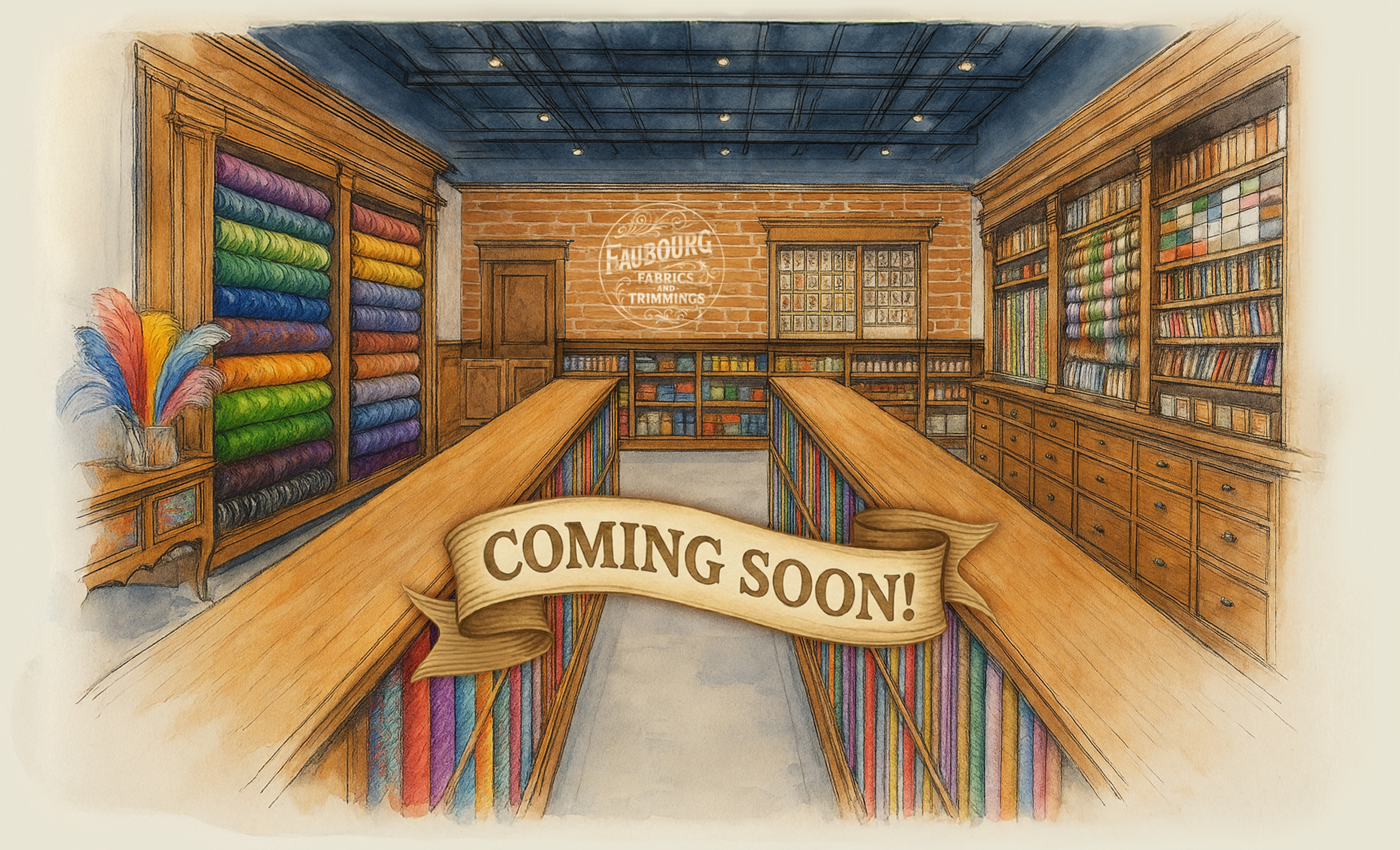 Faubourg Fabrics and Trimmings was created by a life-long maker with decades of experience in performance, costume building, and visual design. After years of crafting garments, producing shows, building sets and props, and supporting creative projects across the city, they understand exactly where the gaps are and what New Orleans artists struggle to find locally. Paired with twenty five years of professional branding and design experience, this expertise shapes the store’s clarity, organization, and eye for quality. Faubourg Fabrics and Trimmings exists because a working creative recognized the need for better resources in New Orleans and decided to build the place they always wished existed.
